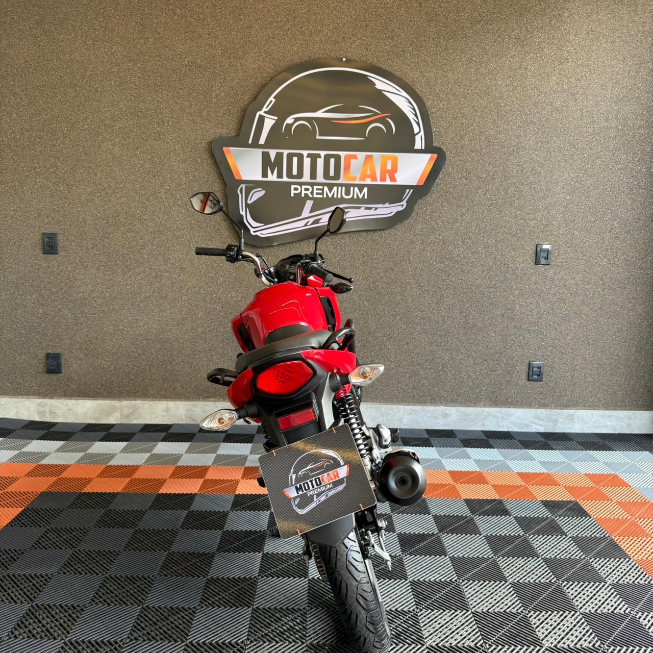 - Rodas: Liga leve, com pneu dianteiro 80/100-18 e traseiro 90/90-18.