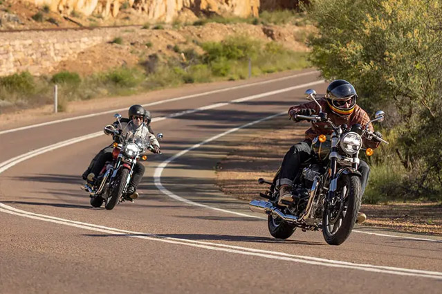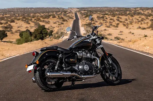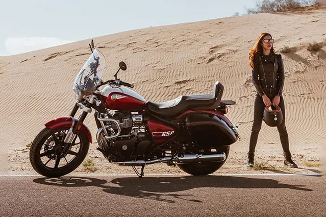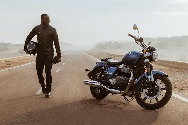 Um assento baixo e largo e uma posição de pilotagem descontraída tornam a viagem numa experiência confortável, independente dos quilômetros que irá percorrer e quantos ainda estão por vir. O espaçoso tanque em forma de lágrima da Super Meteor 650 tem capacidade de até 15,7 litros, garantindo que mesmo as viagens mais longas continuem ininterruptas. Os garfos invertidos na suspensão dianteira prometem total confiança e controle nas estradas ou ruas movimentadas.Um farol totalmente novo combina a estética tradicional com luzes de LED modernas para reduzir o consumo de energia e aumentar a visibilidade, não importa para onde você vá. Um painel de instrumentos digital-analógico de inspiração retrô com tela LCD e navegação Tripper integrada fornece todas as informações que você precisa, dia ou noite. As impressionantes rodas de liga leve com pneus sem câmara garantem que nada possa atrapalhar seus planos, enquanto um pneu traseiro mais largo garante melhor tração e estabilidade, mesmo nas velocidades mais altas. Super Meteor 650, a cruiser quintessêncial, esculpida para as estradas.