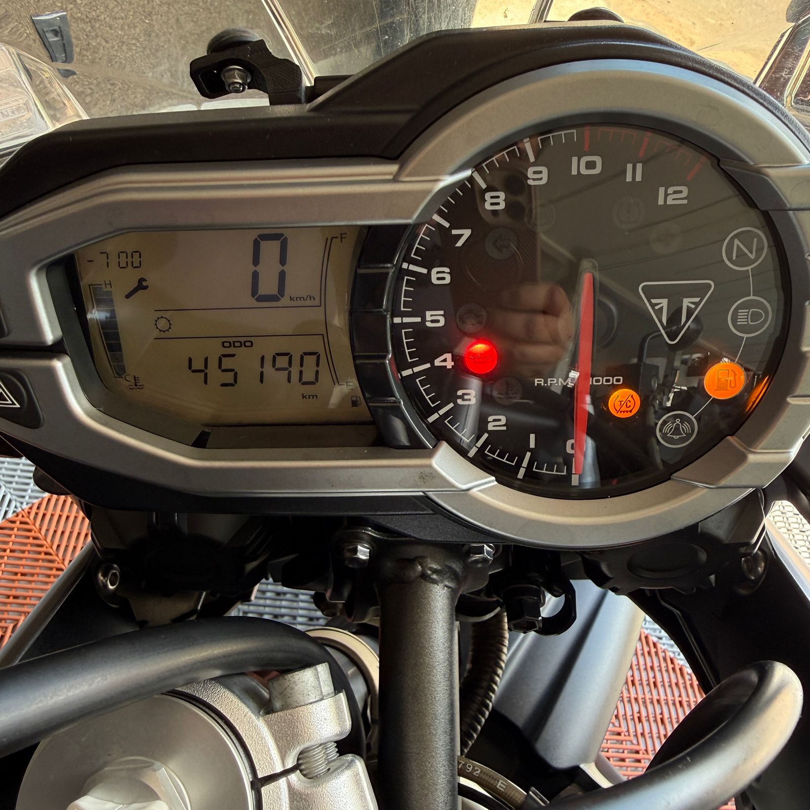 🏍️ Triumph Tiger 800 XC – 2014/15 🔧 Motor & Desempenho Apenas 45.000km Varios acessorios para proteção Protetores de punho,farois,carter,laterais,motor! Motor: 3 cilindros em linha, 4 tempos Cilindrada: 799 cc Potência máxima: 95 cv a 9.300 rpm Torque máximo: 79 Nm a 7.850 rpm Câmbio: 6 marchas Alimentação: Injeção eletrônica Arrefecimento: Líquido 🛞 Chassi, Suspensão & Freios Suspensão dianteira: Garfo invertido Showa, curso longo (off-road) Suspensão traseira: Monoamortecedor Showa com regulagem Freio dianteiro: Duplo disco com ABS Freio traseiro: Disco simples com ABS Rodas: Raio Dianteira: 21” Traseira: 18” 📏 Dimensões & Capacidade Altura do assento: 845 mm (ajustável) Peso (em ordem de marcha): ≈ 215 kg Tanque de combustível: 19 litros 🧠 Tecnologia & Conforto ABS de série Controle de tração Painel digital e completo Iluminação eficiente para viagens Posição de pilotagem confortável e ereta Excelente proteção aerodinâmica ✔ Excelente para viagens longas e uso urbano ✔ Desempenho forte com suavidade do motor tricilíndrico ✔ Versão XC, mais preparada para off-road ✔ Confiabilidade Triumph ✔ Conforto, segurança e versatilidade em uma única moto